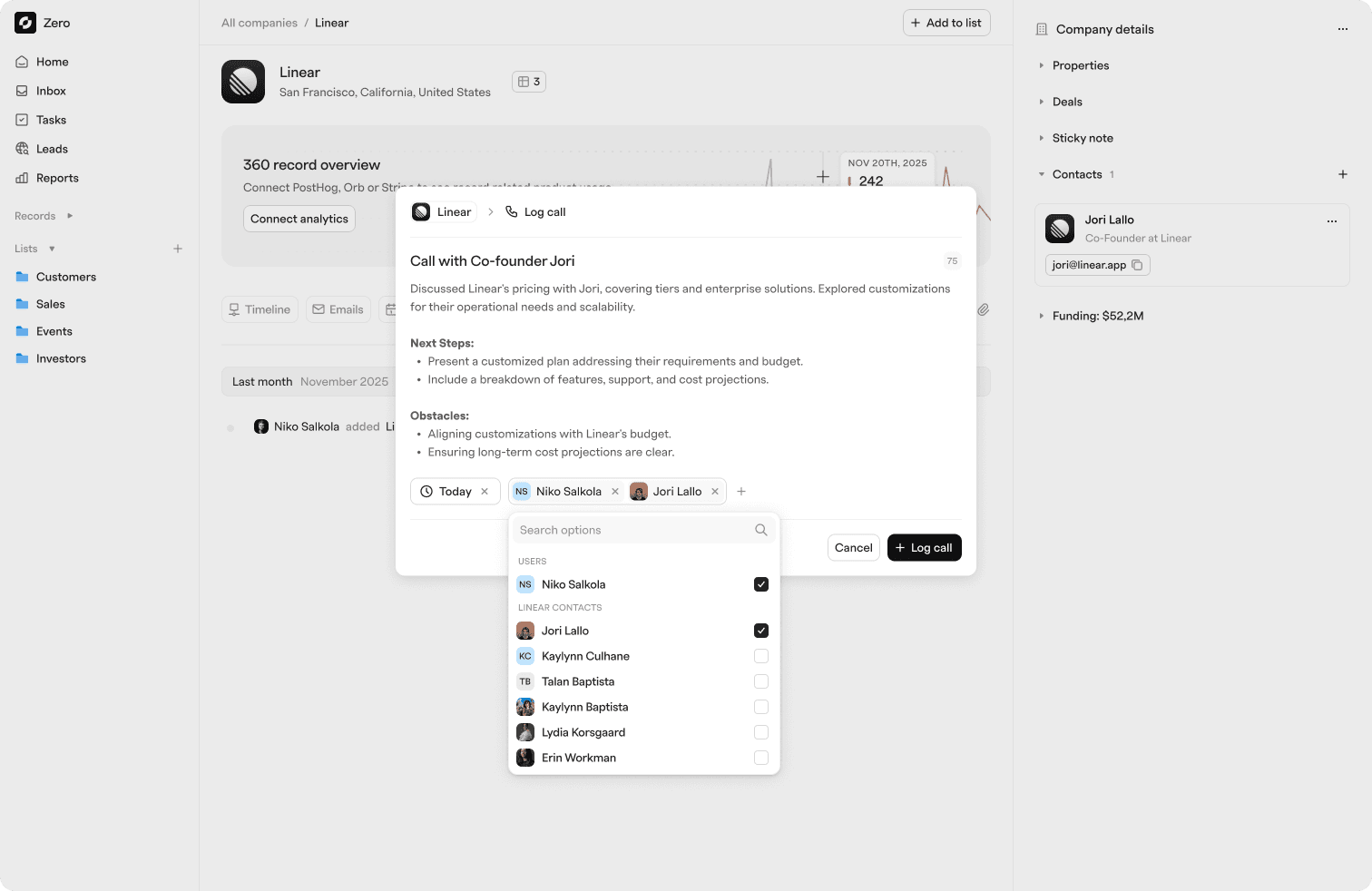 With saved record layouts, Zero adapts to the way you work instead of forcing a single rigid structure. You get faster access to the right context, cleaner records, and a CRM that stays flexible as your workflows evolve.