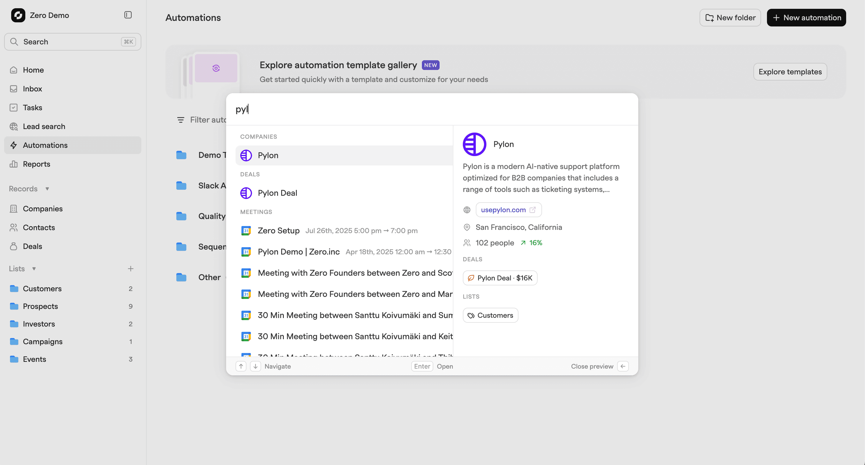 New in Zero: Automations - a powerful workflow builder that lets you automate your GTM processes. Create custom workflows by defining triggers and chaining actions together to eliminate repetitive tasks and focus on what matters.