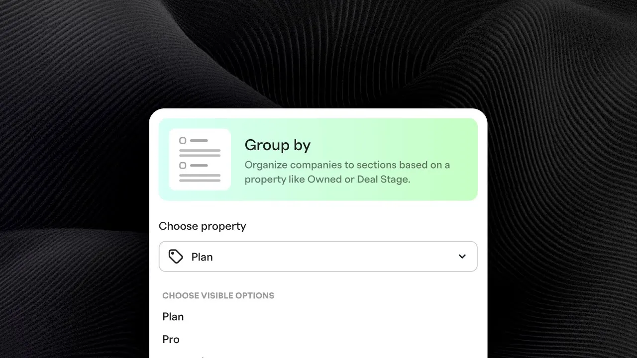 See all your deals grouped by stage, customers by plan, or leads by status - whatever makes sense for your workflow.